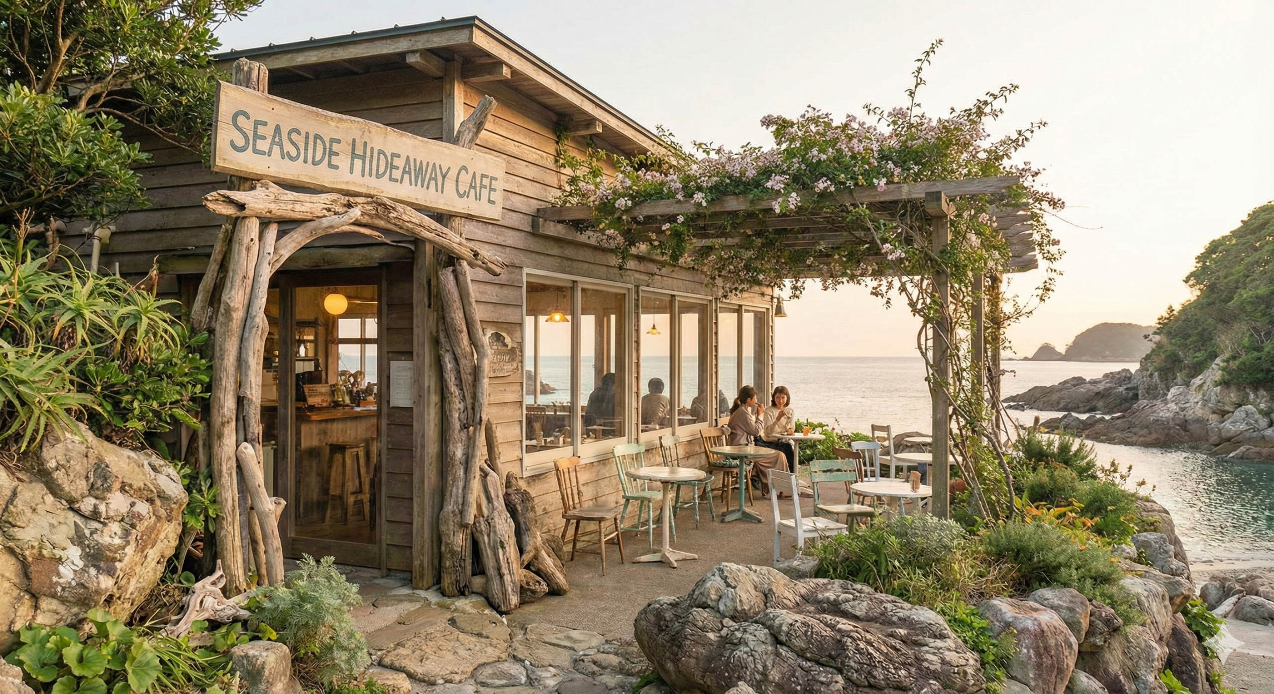 制作実績「海辺の隠れ家」をテーマに、20代〜30代の女性をターゲットにしたカフェサイトを制作しました。